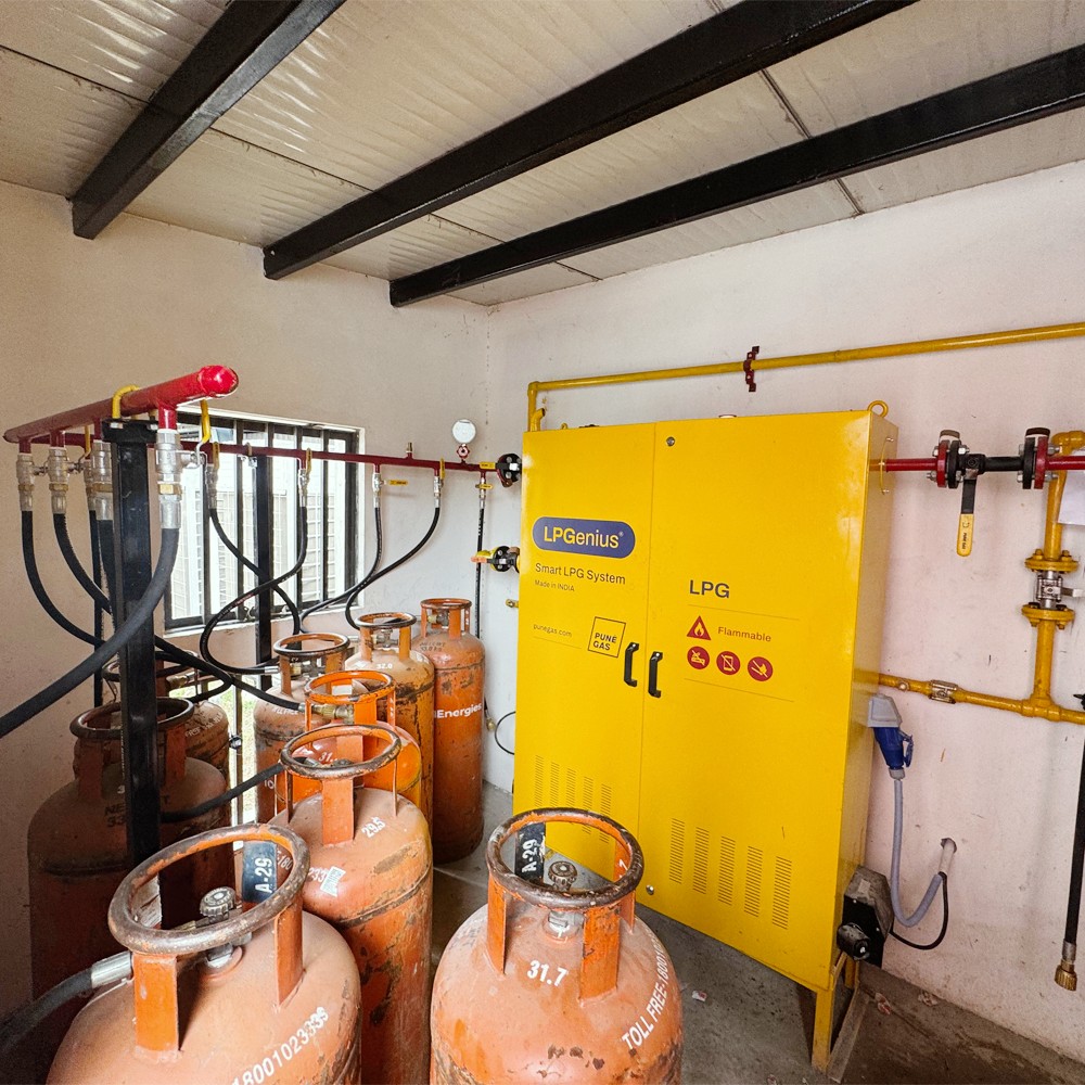 Pune Gas implemented the LPGenius System with Dry Type Vaporizer, enabling a transition to 33 kg LOT LPG cylinders. The intervention delivered improved LPG utilisation, reduced indirect operating expenses, and a more structured LPG infrastructure aligned to institutional kitchen requirements, resulting in measurable cost optimisation of ~₹3.4 lakhs annually.