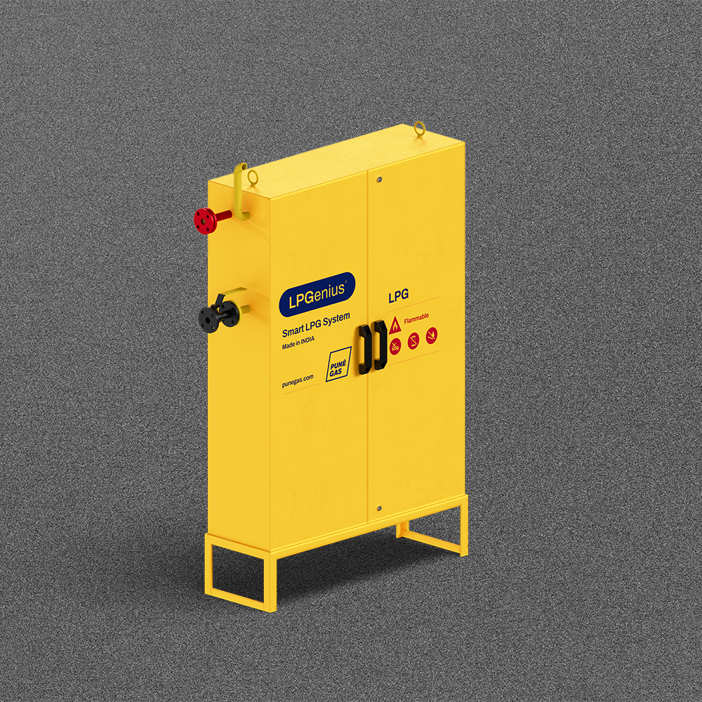 LPGenius25 is a Smart LPG System that caters to growing commercial kitchens and small to mid-size industries. It attaches 5 + 5 LOT cylinders on an external manifold. Great aesthetics and global ergonomic design makes the system desirable and blends easily into your set-up keeping it clean and organized.
